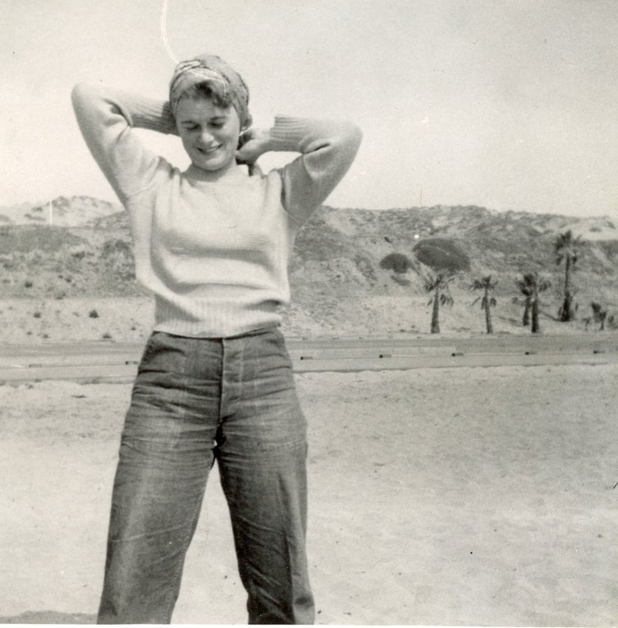On the back of this photo Audrey wrote "I'm just a 'big' girl. I was aked this morning if I was losing weight. Answering 'no,' they said 'Well you're a big-boned girl and just plain big.' Love me, even if I'm not small, gorgeous, lovely, entrancing, tiny, doll-like, etc., etc.??? You'd better! April 1953."